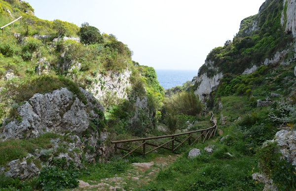 Faccio questa strada da quando ero bambino, e ancora oggi, a quarant’anni, rimango senza fiato quando giro alle spalle della chiesa e mi trovo di fronte, all’improvviso, la montagna, il mare, un ruscello, grotte a non finire. E ringrazio il Padreterno, che ci ha messo il paradiso dietro un campanile. Cinque minuti fa ero ancora a casa, con Ada e i bambini, davanti al camino e alla pignata, e adesso stiamo già scendendo, io e gli altri pescatori, con le reti e le nasse sulle spalle. E come posso dirti, cos’è il Ciolo? È una specie di passaggio segreto, un cortile che parte dal cuore di Gagliano e finisce in mezzo ai pesci, tra gli scogli dove il sole, veloce, sta calando. Davanti e dietro a noi altri padri di famiglia, come me, armati di cesti, lenze, remi scendono per la seconda pesca della giornata, quella che facciamo all’ora del tramonto. Ma non siamo solo noi, ad abitare questa valle nascosta nella roccia. Sulla sinistra, lungo il canalone, decine di persone piegate sulla zappa coltivano quelle che i Signori chiamano “li resti”: pezzi di terra troppo piccoli, per loro, che non vale la pena lavorare: con quella poca terra mista a pietre noi facciamo pomodori e zucchine, pere, mele che riportiamo a casa, la sera, come fosse l’oro. Mi fermo, sul sentiero, e scambio due sarde prese stamattina con un cesto di melanzane e un po’ di noci, che domani regalerò ai bambini. Il Ciolo, per noi gaglianesi, è pure questo: una specie di mercato naturale, un negozio a cielo aperto dove puoi scambiare pupiddi con cicorie, spicaluri con piselli. Certe volte, quando siamo in barca, passiamo vicino a una campagna, alta sul mare, il contadino cala un secchio pieno di verdura e noi lo riempiamo con il pesce, che un secondo prima nuotava sul fondale. Ci dai tanto, Ciolo, ma quante volte ci spaventi! Come fai paura, quando soffia il vento di levante e sembri la gola schiumosa di un gigante, che vuole salire, arrabbiato, fino al paese, fino alle nostre case, e urla, e sbatte sulle porte. Mio padre ancora mi racconta di quando ci furono onde così alte che sembrava, dal rumore, di essere di nuovo ai tempi della guerra, e il giorno dopo, i contadini, tornati in mezzo ai campi, trovarono pesci, pesci morti, nella terra! Ma questo è anche un posto di risate e bestemmie, cradate a mare e barzellette ‘n terra! Io già penso a questa sera, quando avremo messo le reti di cotone ad asciugare, avremo diviso i pesci tra di noi, e saliremo in una delle grotte del sentiero, per mangiare e dormire qualche ora prima della pesca mattutina. Farà freddo, e sentiremo l’umido entrare nelle ossa, ma come ci scalderemo attorno al fuoco e ai commenti sulla pesca, attorno a qualche sarda che si cuoce sui carboni, mentre il vino gira, nella damigiana, e passa di bocca in bocca, da vecchio a giovane, da padre a figlio! Chissà se ci ascolti, Ciolo, chissà se senti, nelle grotte, il fiato di queste vite stanche ma felici, chissà se ripeti a bassa voce nell’acqua, sul fondale, le nostre parole colorite.